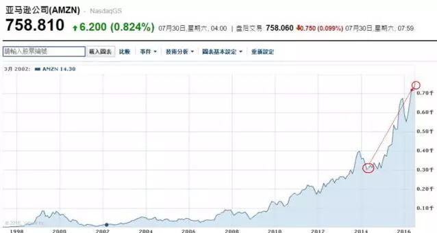 2014 年,貝佐斯被《哈佛貿易評論》選為 100 位卓越 CEO 第一名,當選理由即股東回報率驚人:在調整國別后,1996 年到 2014 年的股東回報率,依然達到了 152 倍。 而且,這還不是終點。 從 2015 年至今,短短 19 個月內,亞馬遜的市值不僅超過了沃爾瑪,還超過了伯克希爾。本周末亞馬遜市值達到 3657 億美元,比 2015 年第一個交易日的 1438 億美元高出了 2200 億美元。假如你對這個數字沒有概念,可以把它想象成是四個“百度”。