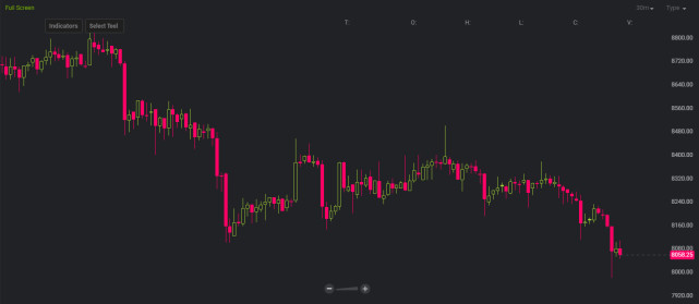 Bitstamp數據顯現,比特幣最近24小時跌落逾300美元,跌幅大約3%,一度跌破8000美元報7980美元,創4月18日以來新低。