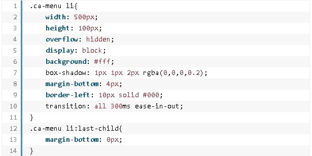 在示例1的堆疊菜單中,可完成各個元素的大小,以及各個菜單項的布景顏色的改變。 為列表項界說款式:
