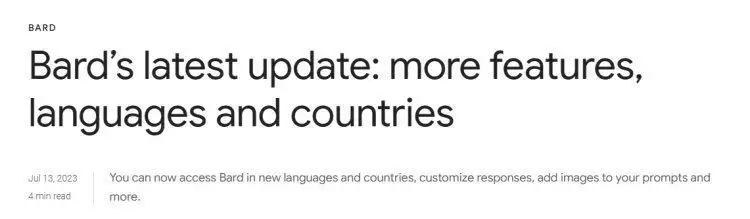 7月14日訊,美東時(shí)刻周四,谷歌對(duì)其人工智能(AI)談天機(jī)器人Bard進(jìn)行了版本更新。谷歌宣告,將向歐盟和巴西的更多用戶敞開Bard服務(wù),