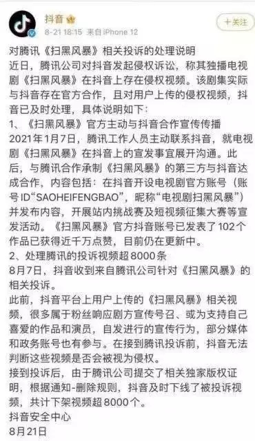 近騰訊與抖音就長(zhǎng)、短視頻版權(quán)問題“握手言歡”,雙方宣布“將盤繞長(zhǎng)短視頻聯(lián)動(dòng)推行、短視頻衍生創(chuàng)作展開協(xié)作。”這一舉措,惹起了社會(huì)的普遍關(guān)注與討論。被看做是“長(zhǎng)短視頻之爭(zhēng)的一個(gè)“新拐點(diǎn)”。 很多網(wǎng)友慨嘆“早該如此”,
