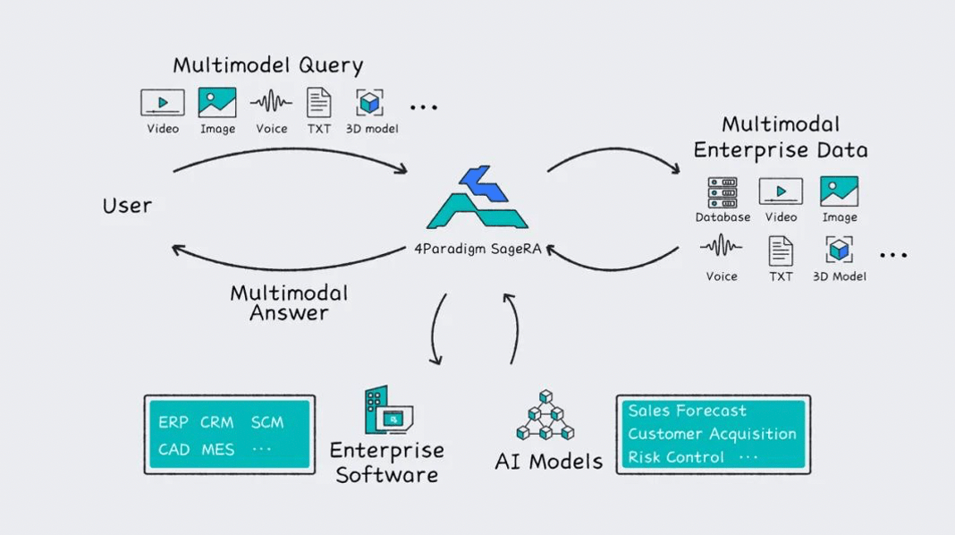 3月24日,第四范式發布了全新晉級的“式說”(4Paradigm SageRA),在原有生成式對話才能的根底上,參加了文本、語音、圖像、表格、視頻等多模態輸入及輸出才能,并增加了企業級Copilot才能。應用企業級Copilot才能,